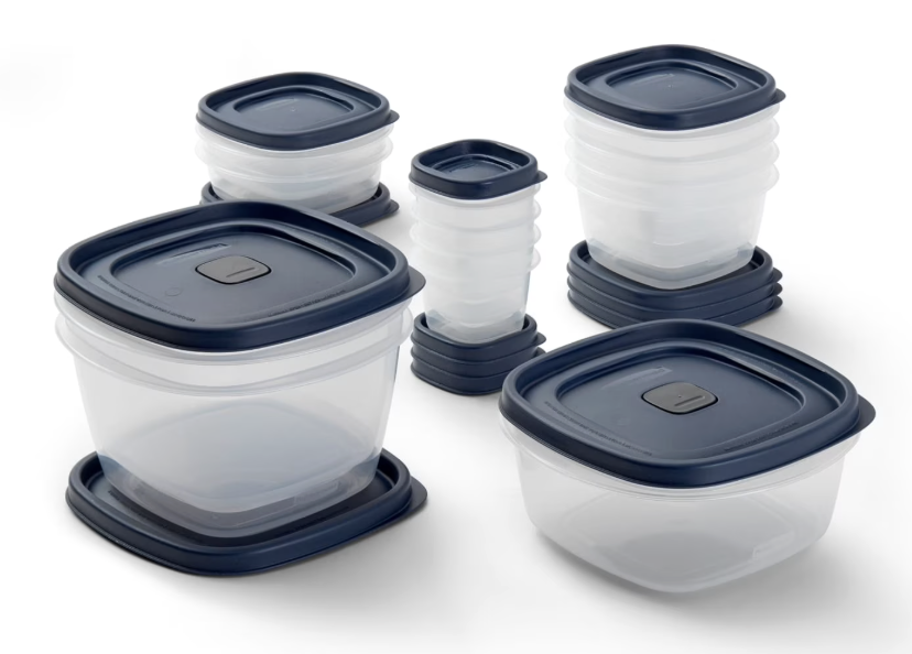 You can choose from blue lids or red lids and you can get 13 pieces in total in varying sizes and 13 matching lids. This style has a vent button on the lid so they can be placed in the microwave.