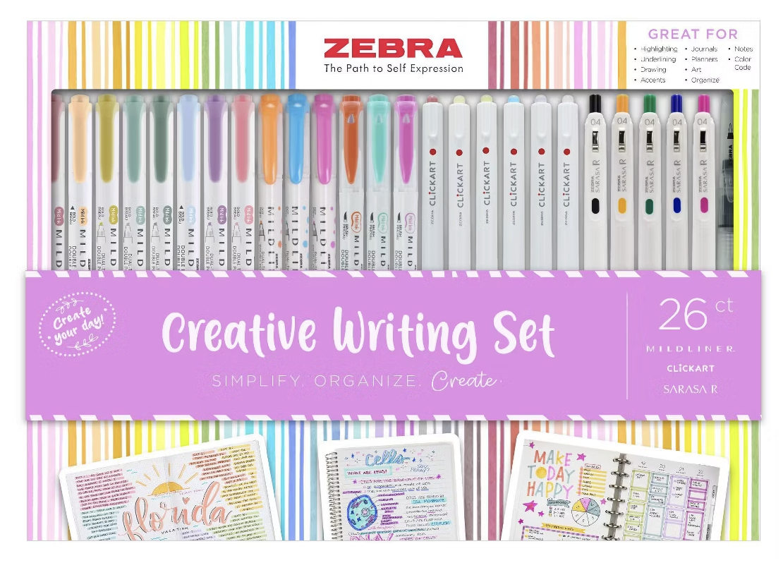There are Sharpie sets, Papermate Flair, gel pen sets and more. This set with Zebra highlighters and pens is on sale for $14.99. This would be great for a student taking notes by hand or someone that likes paper planners and lists, journaling etc..