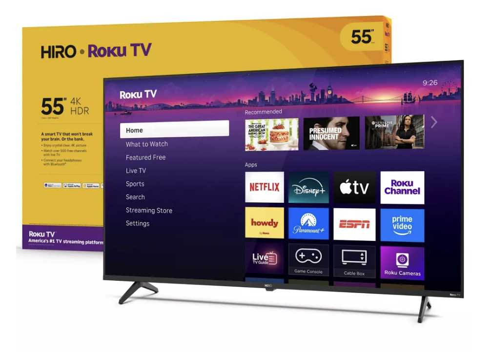 The brand is called Hiro and the tv is in 4k with Roku streaming.